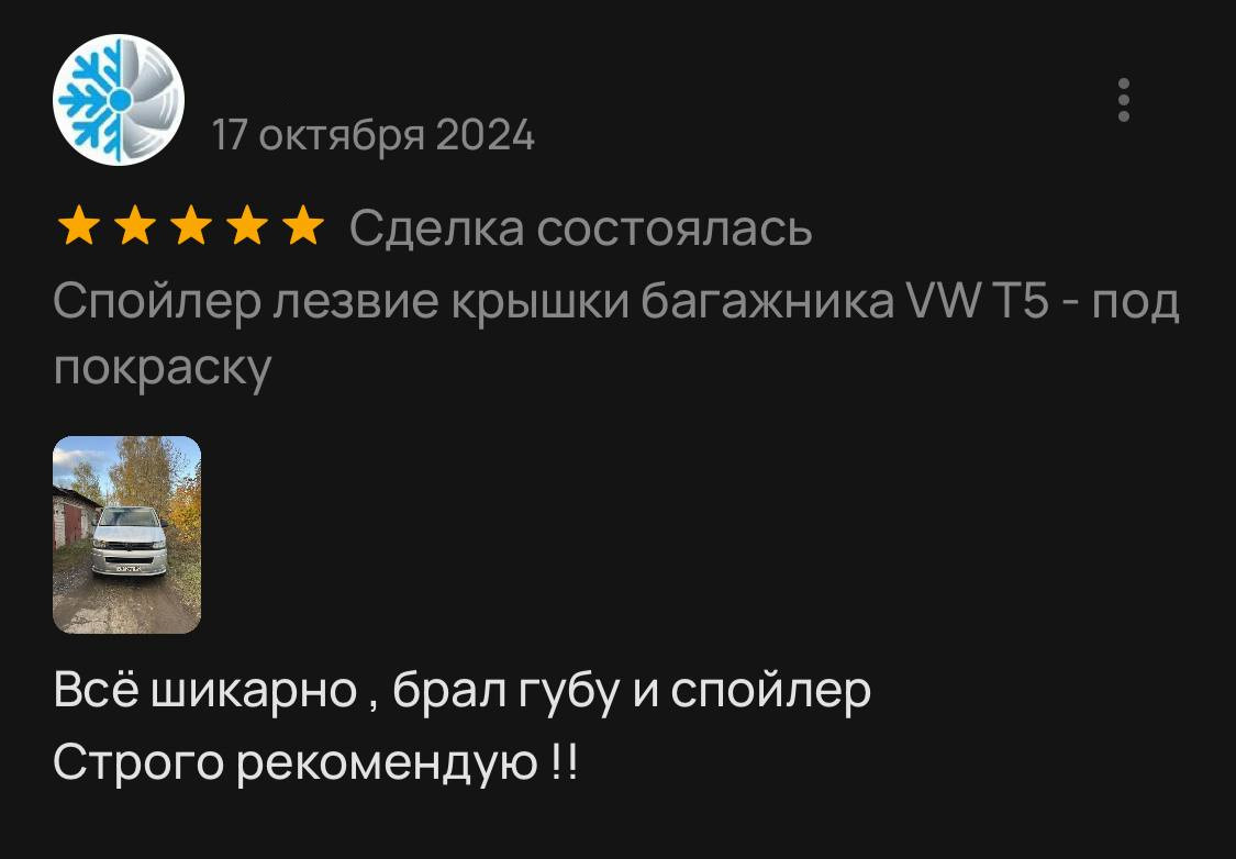 Спойлер лезвие крышки багажника VW T5 T6 (распашные двери)